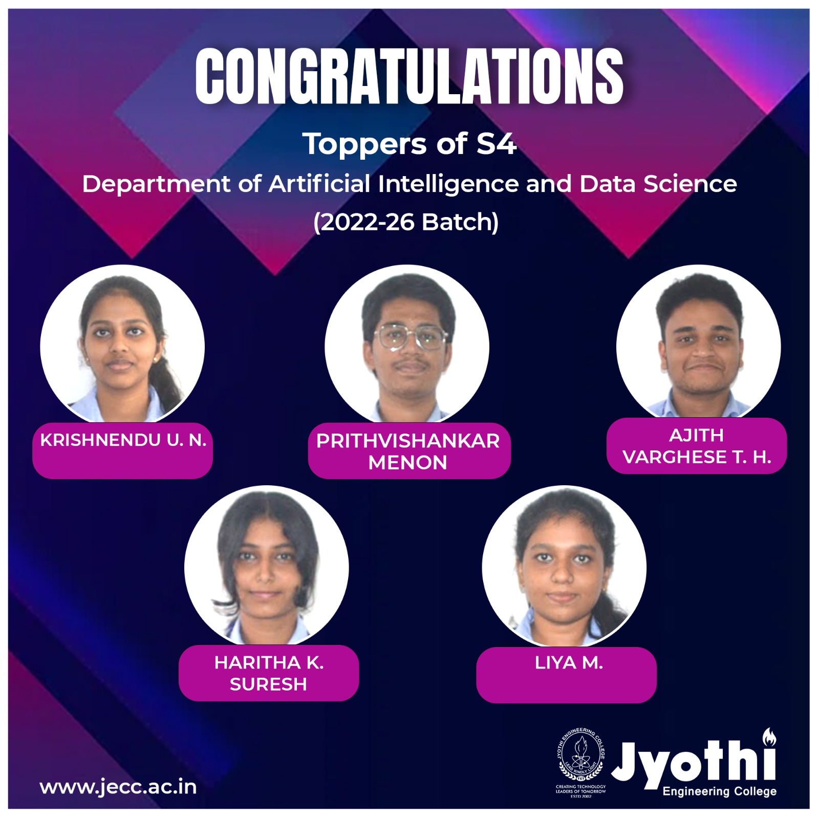 Congratulations to S6 Toppers – AI & DS (2022–2026 Batch)