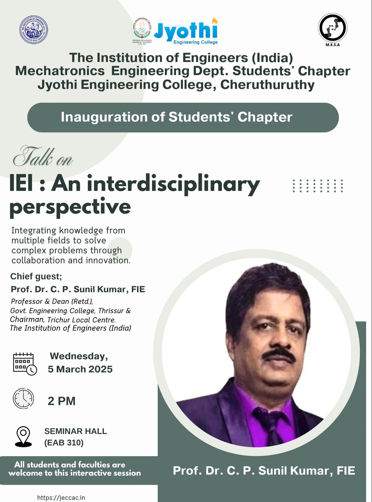 IEI Student Chapter Inaugurated with Insightful Interdisciplinary Talk.